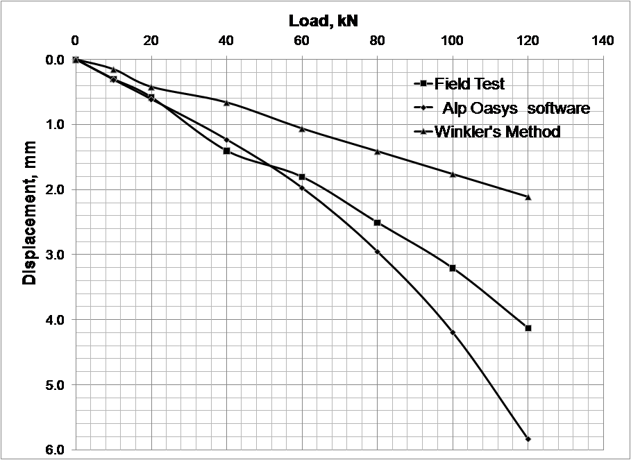 IS 2911-第四部分规定,最大允许位移为12毫米。应进行试验直至达到该位移,以确定极限承载力。由于缺乏足够承载力的千斤顶和支架,本文介绍的现场试验并未进行此项试验。由于桩径较大,这种情况变得越来越常见。
