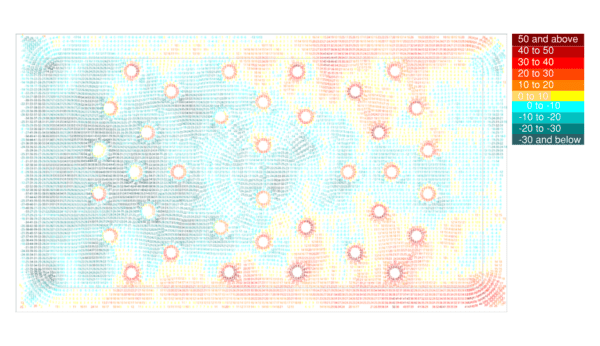 点云测绘显示,屋顶厚度与形状偏离了设计要求。此外,材料测试表明混凝土强度与刚度均低于预期。为评估竣工屋顶与设计方案的偏差,通过Rhino与Grasshopper软件进行了对比分析。