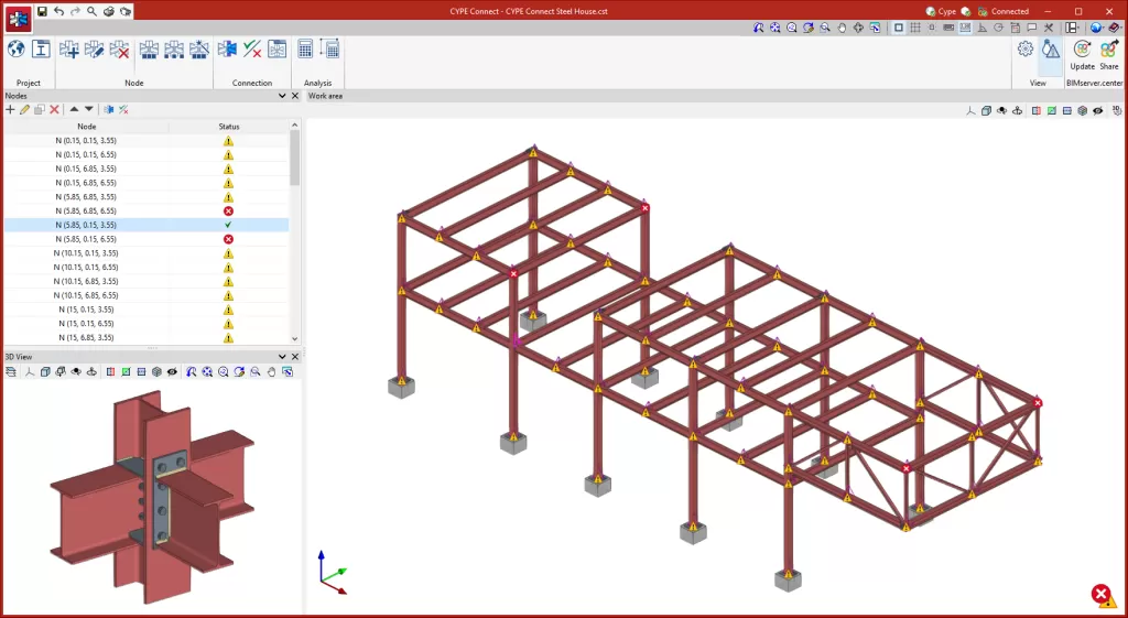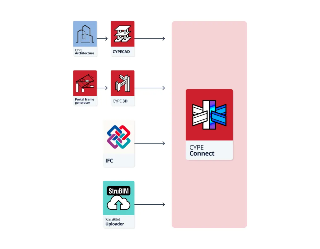 CYPE Connect 允许用户手动创建新节点、输入力和组合,也可以导入结构 BIM 模型,程序将解析这些模型并自动生成节点。CYPE Connect 可以导入在 CYPECAD 和 CYPE 3D 中开发的钢结构和木结构的节点和力。