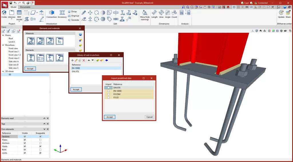 StruBIM Steel 是一款用于进行钢结构深化设计的程序。该程序包含用于建模或导入 BIM 模型的各种工具,并允许用户精确定义深化设计所需的所有元素,例如型材、板材、螺栓、焊缝和锚固件。因此,该应用程序提供 DSTV 格式的制造文件。