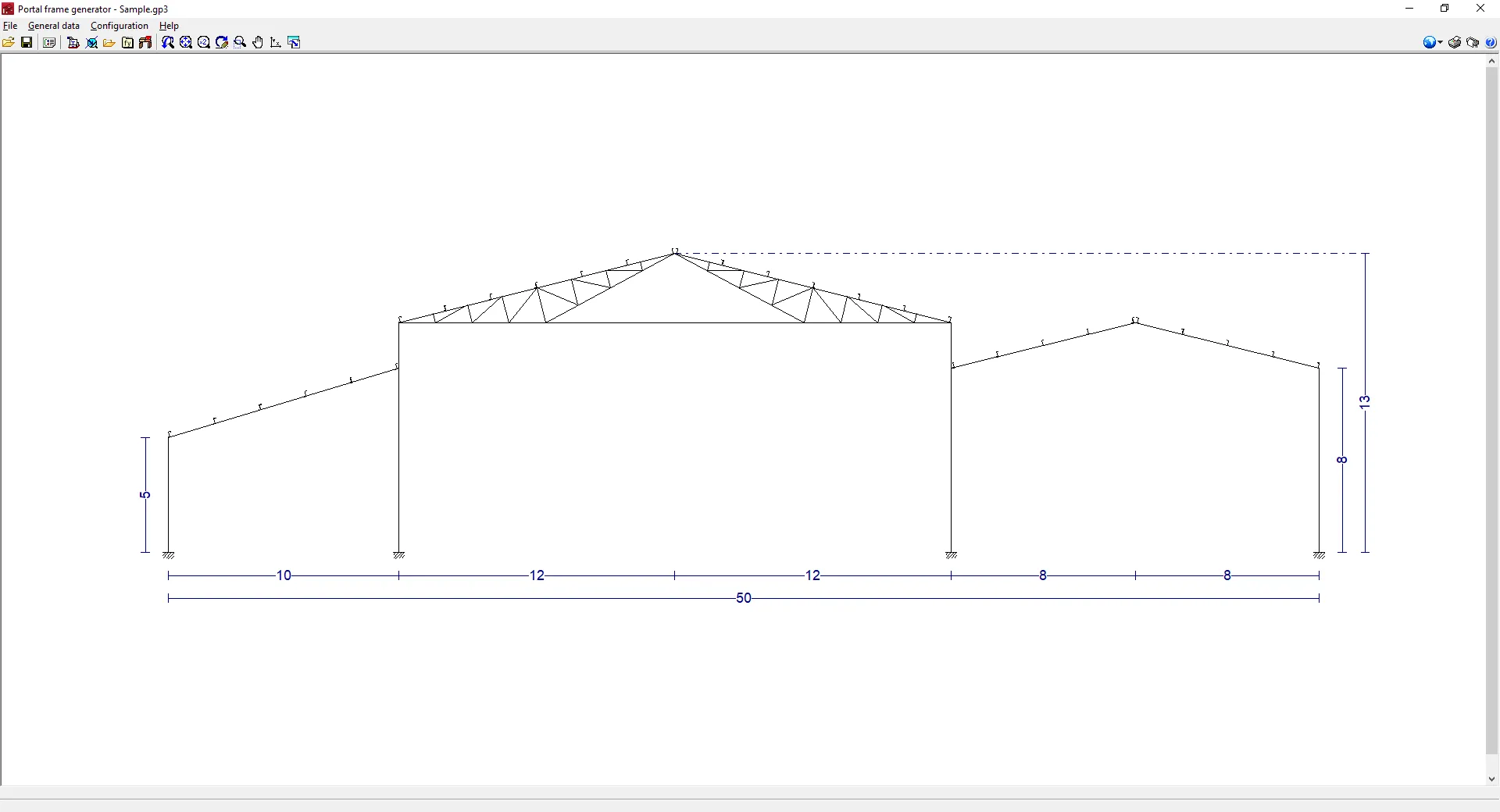 该程序具有简单的工作环境,可用于在可用工作区域中快速输入和编辑门式框架几何图形: