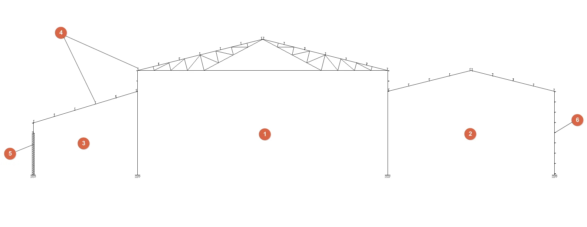 单坡度刚性框架(来自“新建框架”、“单坡度”,屋顶类型为“刚性框架”;可通过“移动框架”重新排序框架)。