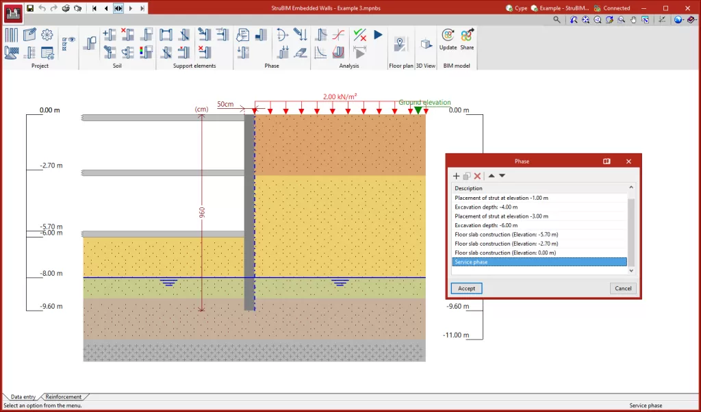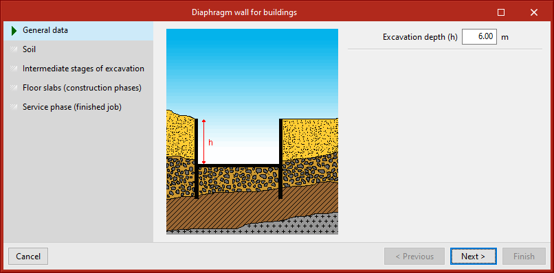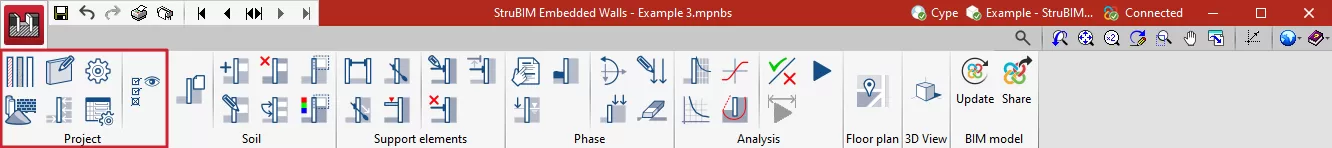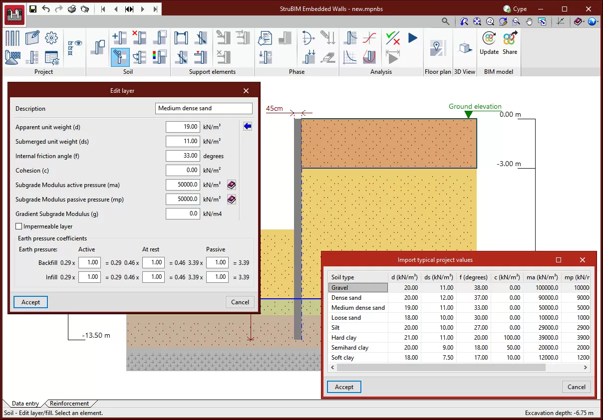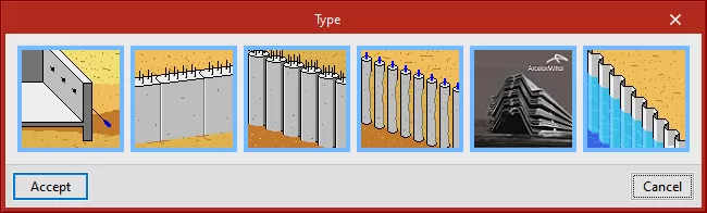 可选择嵌入墙的类型,可以是通用墙体、地下连续墙、桩式挡土墙或小型桩式挡土墙。