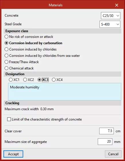 允许用户选择分析中要应用的选项,例如安全系数。