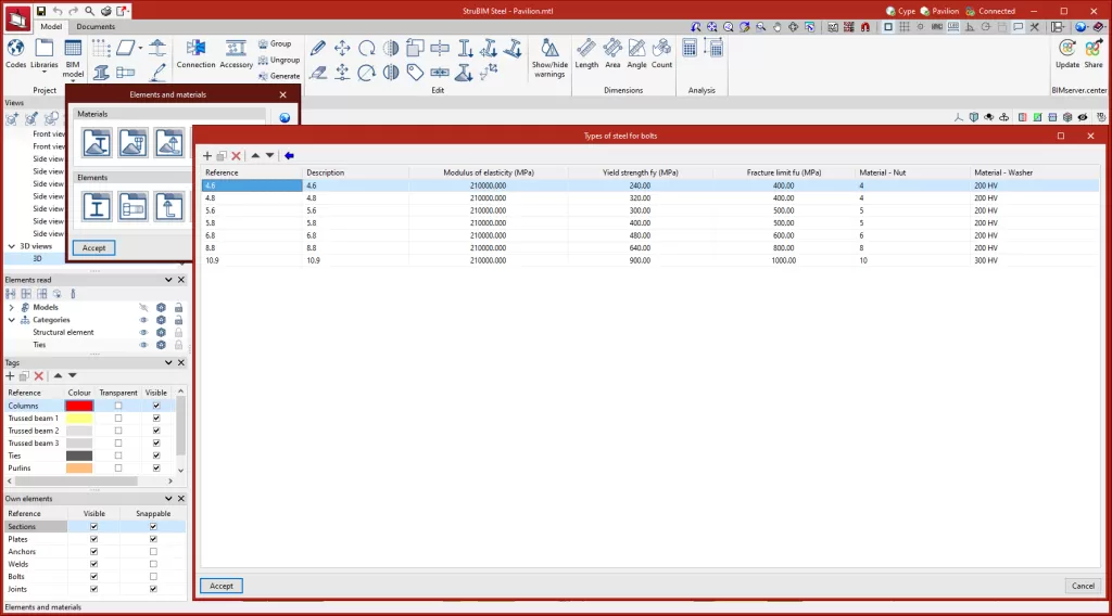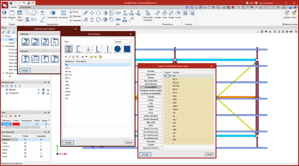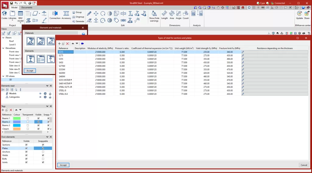 StruBIM Steel 允许通过以下库保存项目中使用的材料的特性: