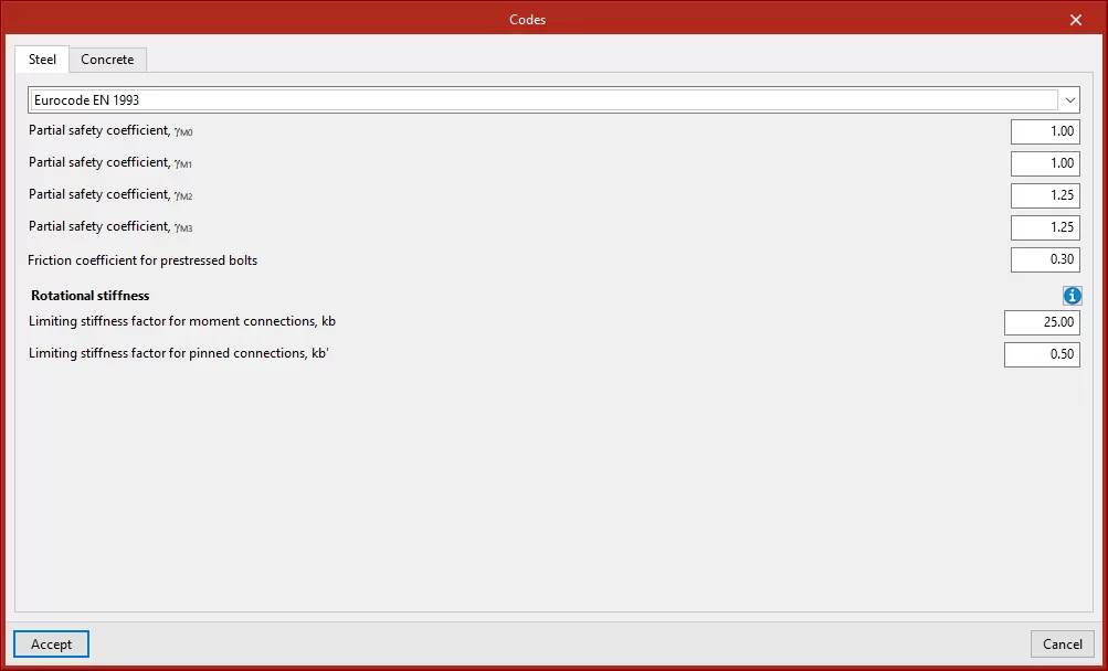 除了在 StruBIM Steel 中进行连接细节设计外,该程序还允许用户使用 CYPE Connect 分析连接。CYPE Connect 可与 StruBIM Steel 配合使用,前提是这两个程序都包含在许可证中。在这种情况下,用户可以在“规范”窗口中选择不同项目材料的设计规范。